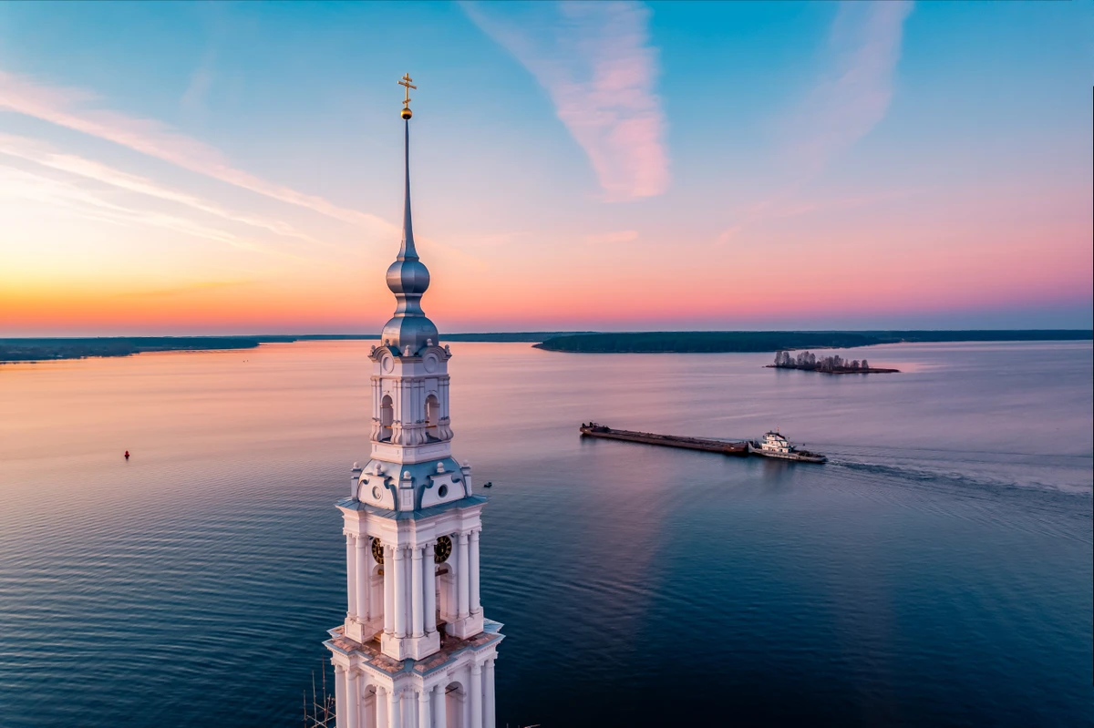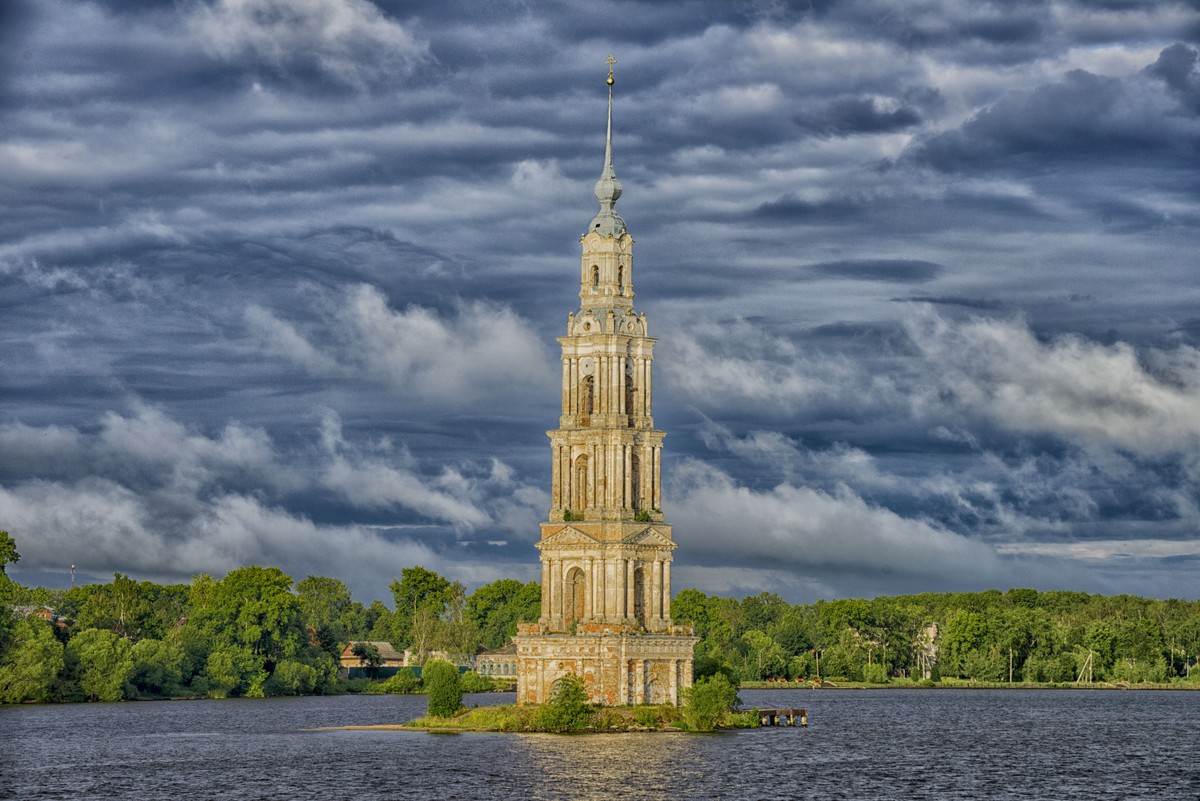 A: Колокольня Никольского собора — главный символ Калязина и одна из самых известных достопримечательностей России. Она осталась стоять после затопления старого города и теперь возвышается прямо посреди Волги.
